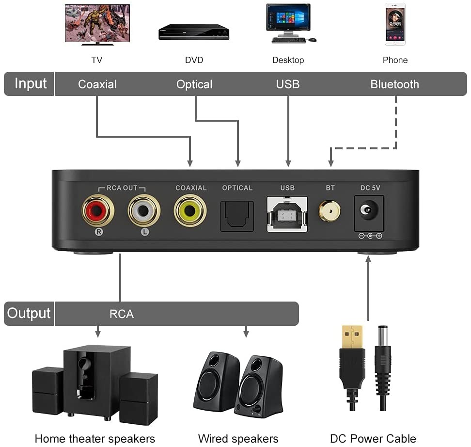 High-Fidelity Audio | Delivers clean, detailed, and accurate sound from digital sources to speakers or amplifiers. |
