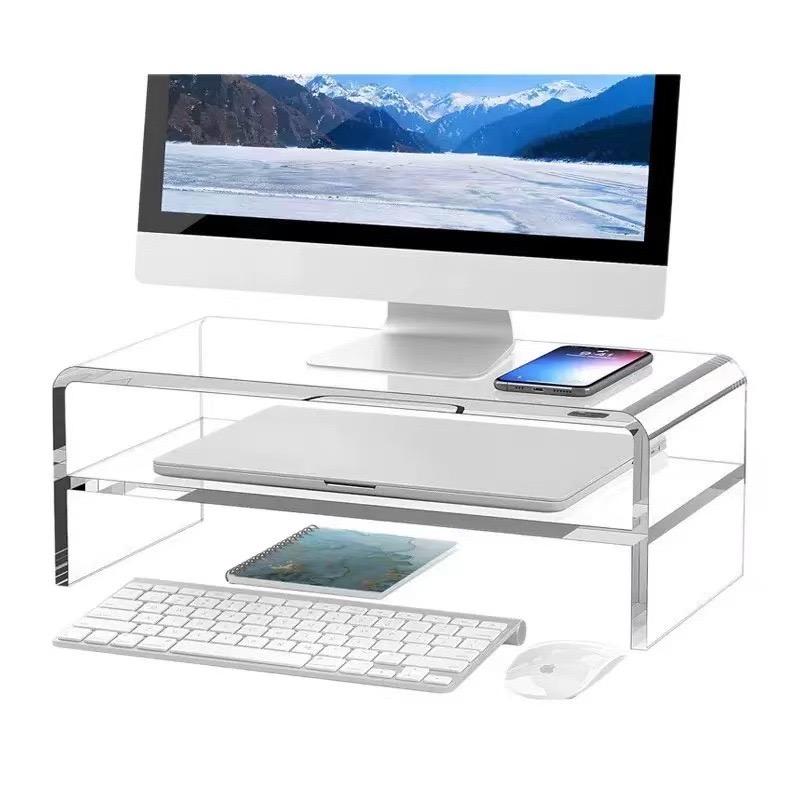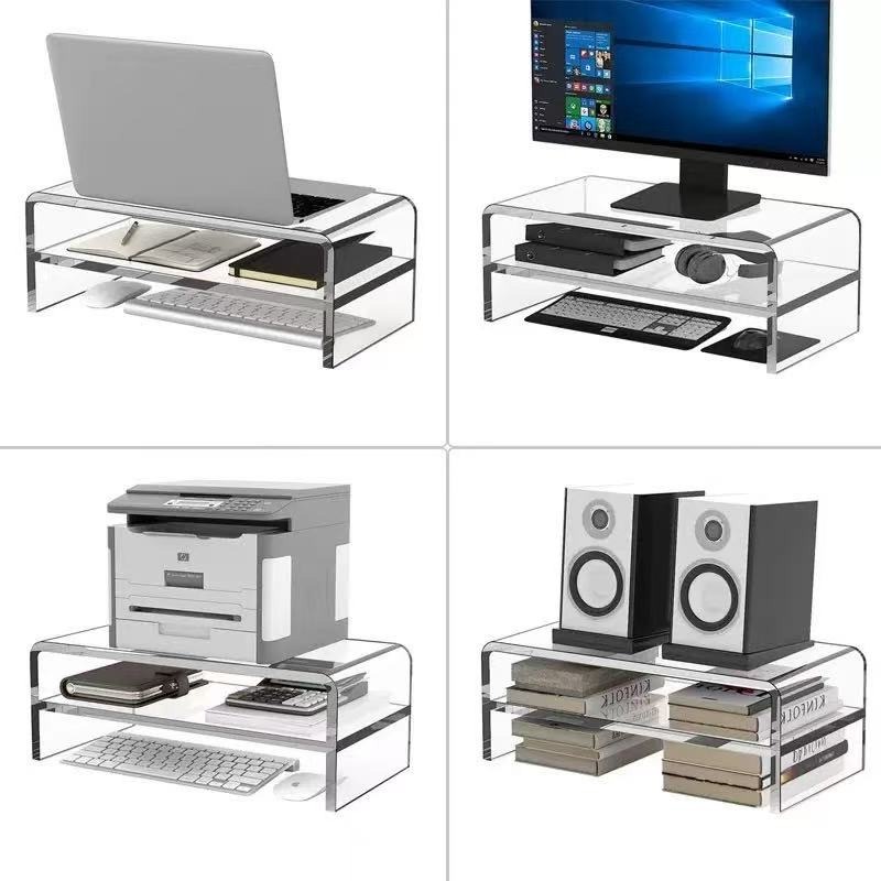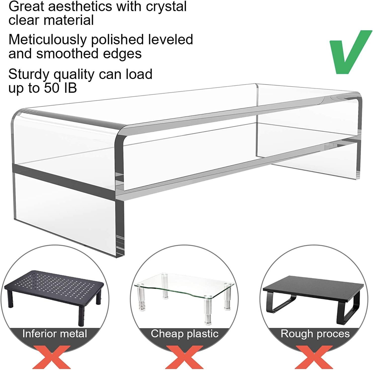 TOP-GRADE ACRYLIC:Made of high quality acrylic material,possessing clear appearance and smooth surface,suitable for various occassions.0.45 inch thickness makes it sturdy enough to support various heavy gadgets up to 50 Ib such as a TV riser, an iMac stand,a printer stand for shelf space and a desktop shelf for book.