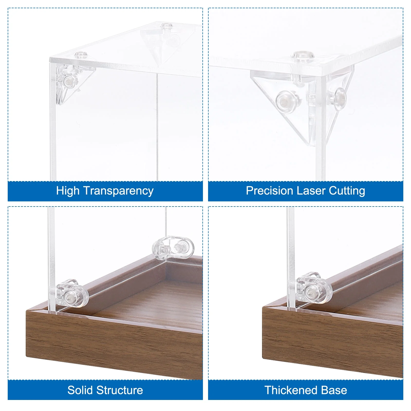✨ “Showcase your treasures in style with clear elegance and wooden warmth.”
