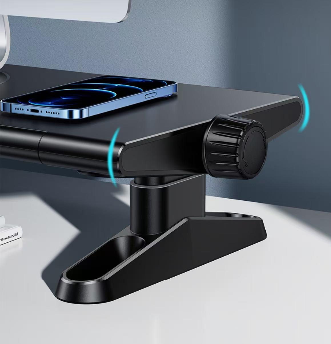 • The stand include a circular area on top tht can be used for wireless charging. This feature would allow you to charge compatible devices, like smartphones or wireless earphones, without the need for additional cables.