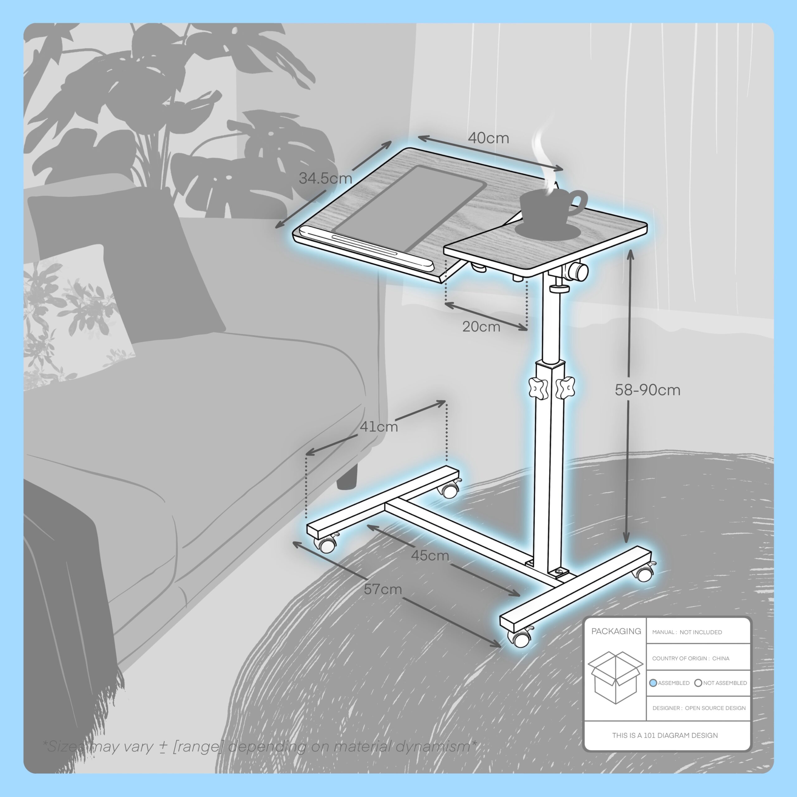 2.Safety rollinglaptop desk:The rolling bedside table can safely hold your laptop with safety edge stopper.