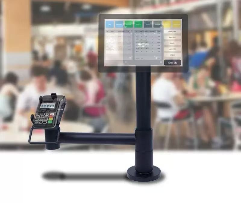 Provides an ergonomic solution for retail and hospitality settings by allowing height, angle, and orientation adjustments.