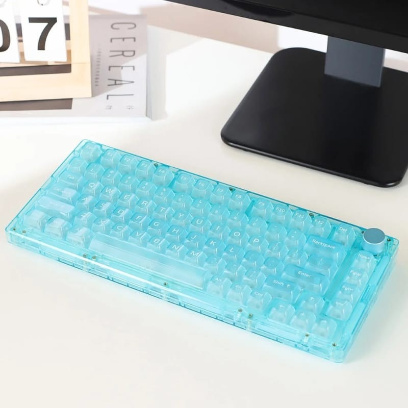 | Case / Keycaps | Transparent acrylic/PC case + clear PC keycaps |