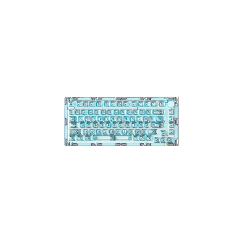 The Akko MonsGeek ICE75 Blue Crystal Pro is a 75% layout mechanical keyboard with a transparent-style design, featuring Akko V3 Crystal Pro switches for smooth and responsive typing. It supports hot-swappable 3/5-pin switches, multi-mode connectivity (USB-C wired, 2.4 GHz wireless, Bluetooth 5.0), a dual-mount structure (gasket & top-mount) for optimal typing feel, and full RGB south-facing LEDs for a customizable lighting experience.