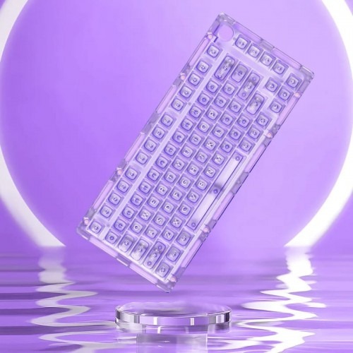 The Akko MonsGeek ICE75 Purple Crystal Pro is a 75% layout mechanical keyboard featuring a transparent purple “crystal” design. It comes with Akko V3 Crystal Pro linear switches, hot-swappable 3/5-pin switch support, dual-mount structure (gasket & top-mount), multi-mode connectivity (USB-C wired, 2.4 GHz wireless, Bluetooth 5.0), and full RGB south-facing LEDs for a responsive and customizable typing experience.