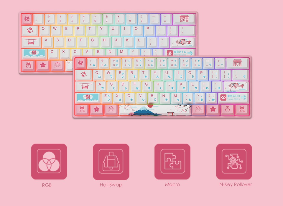 The Akko World Tour Tokyo 3061S RGB with Akko CS Jelly Purple switches is a 61-key (60%) mechanical keyboard themed around Tokyo’s iconic imagery — Mt. Fuji, cherry blossoms and the city’s vibrant skyline. With hot-swappable 5-pin support, tactile Jelly Purple switches and full RGB lighting, it combines high-performance customization with striking aesthetics.
