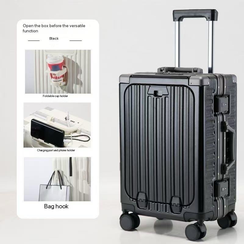 – Hands-Free Travel: This versatile luggage features USB and type-C port to charge your phone or electronics without holding a power bank. (Power bank not included). The folding cup holder ensures your drinks are always within arm’s reach and the mobile phone holder allows you to binge-watch your favorite shows in waiting times. The intimate hook design also leaves your hands free to navigate the journey.