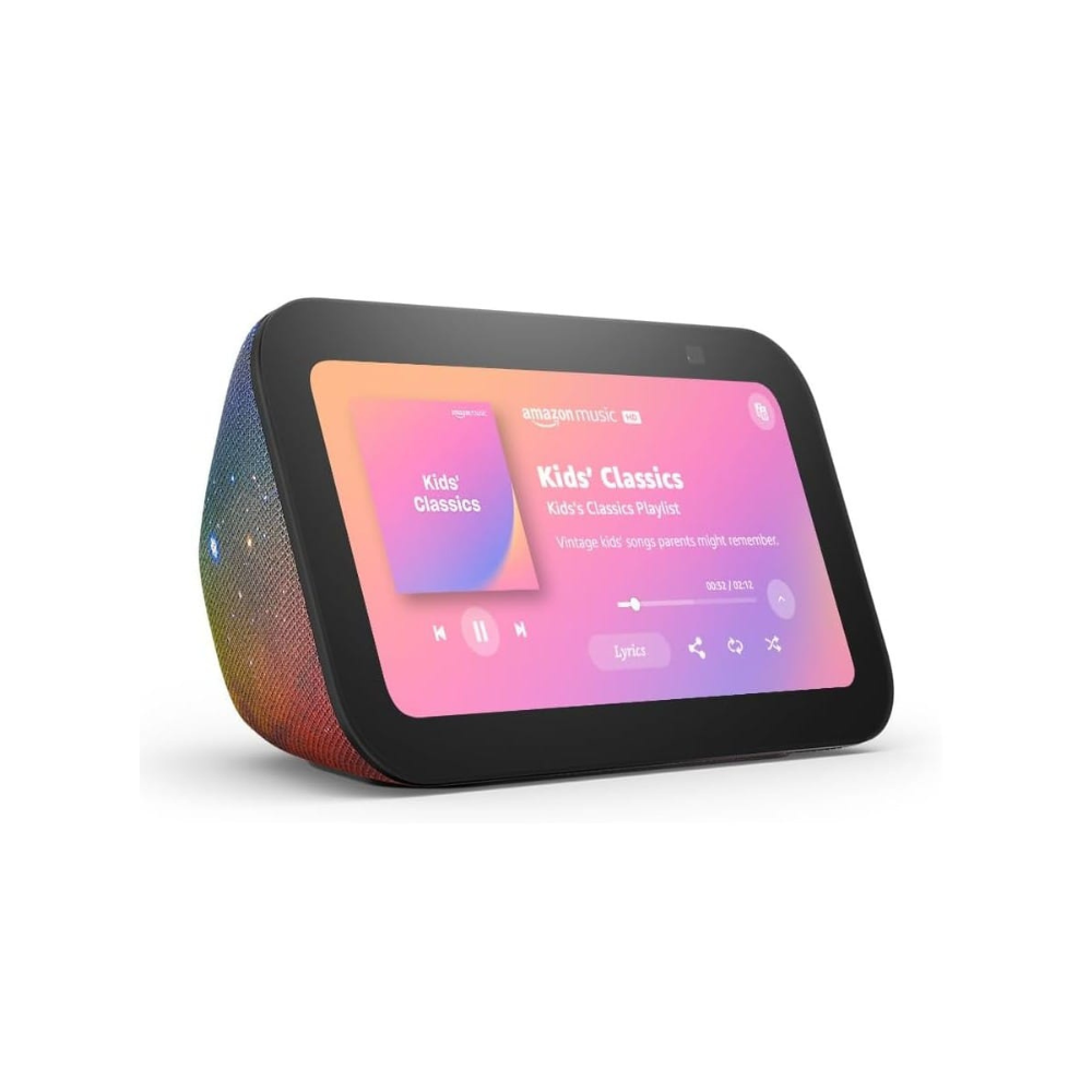 The Amazon Echo Show 5 Kids (3rd Generation) in its fun **Galaxy** design is built for a child’s room — combining a kid-friendly smart display with the power of Alexa. With a 5.5″ touchscreen, this compact device offers a vivid, interactive interface for learning, play, and daily routines.