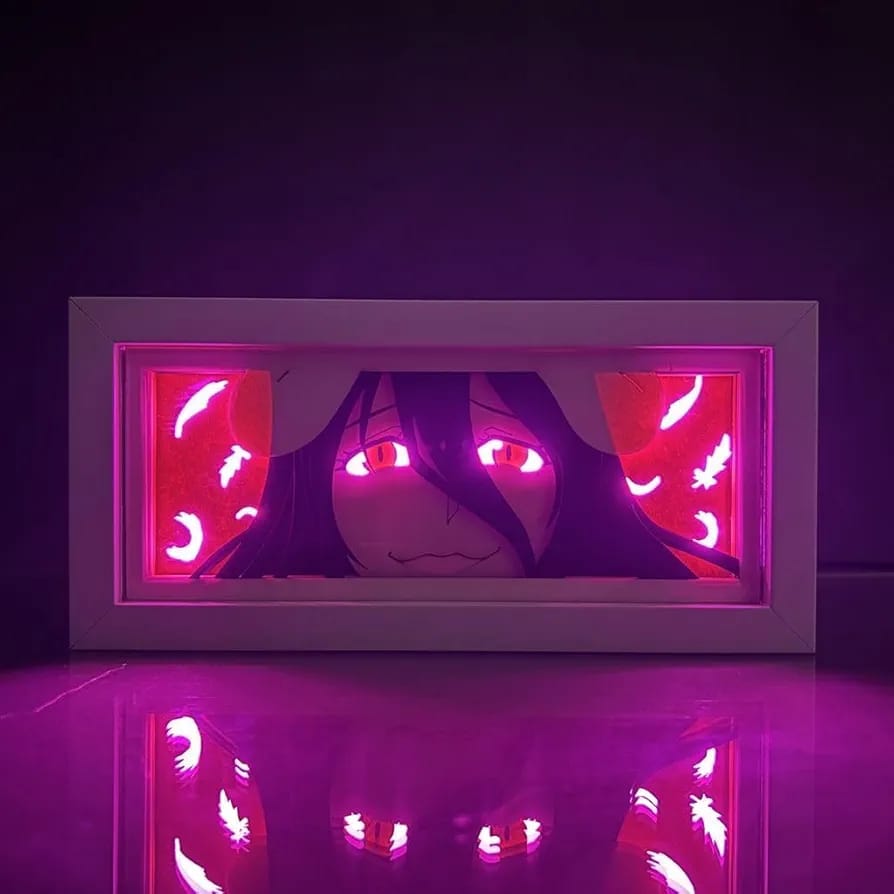 The Anime Light Box Overlord – Albedo Light Lamp is an elegant LED lightbox inspired by the graceful yet fearsome Overseer of the Guardians, Albedo, from *Overlord*. Crafted with layered hardened-paper artwork inside a durable PU frame, it beautifully highlights Albedo’s flowing black wings, golden eyes, and iconic white dress. When illuminated, the layered design creates a soft, ethereal glow that brings out her celestial presence. Compact and lightweight, it serves perfectly as ambient room décor, a collector’s display piece, or a standout night-time accent. With USB and AAA battery power options, this lightbox enhances any anime setup — an ideal piece for Overlord fans and Albedo admirers.