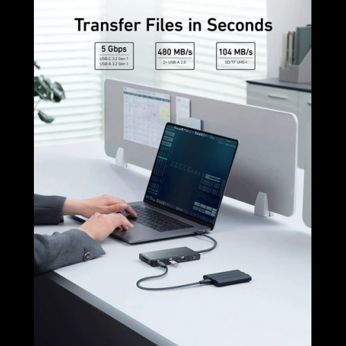 | Ports / Functions | 9-in-1: 4K HDMI, 100W USB-C PD-IN, Gigabit Ethernet, 2× USB-A 3.0 (5Gbps), 2× USB-A 2.0, SD card slot, microSD card slot |