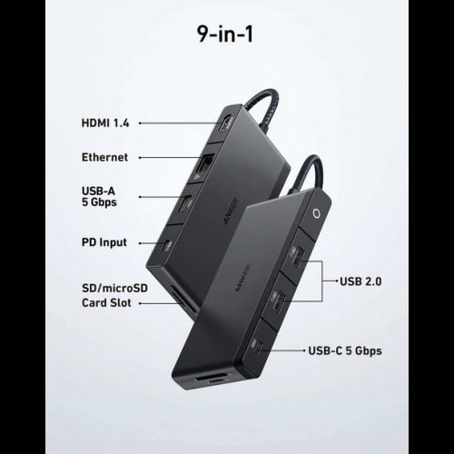 The Anker 552 USB-C Hub (9-in-1, 4K HDMI) is a versatile all-in-one connectivity solution designed for laptops, tablets, and ultrabooks with USB-C ports. It expands a single USB-C connection into nine essential functions, including 4K HDMI output, fast data transfer, SD/microSD card access, Ethernet, and 100W USB-C pass-through charging. Ideal for work, study, travel, and multi-monitor productivity setups.