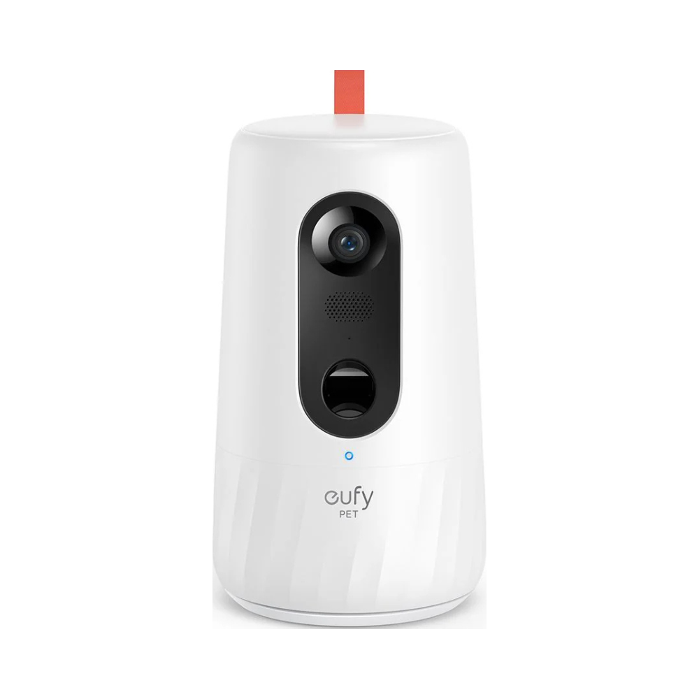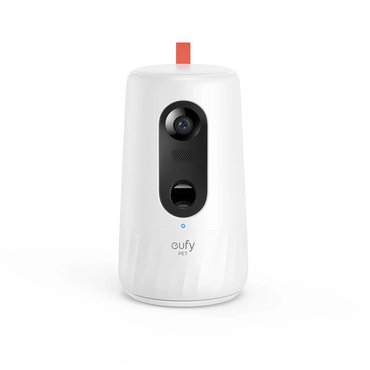 The eufy Dog Camera (D605) is a smart pet-monitoring camera designed for dog owners who want to stay connected to their pets from anywhere. It features 1080p HD video, a 170° wide-angle lens, 270° camera rotation for full-room coverage, two-way audio, bark alerts, night vision, and a 3-distance treat-tossing system with anti-clog design. With built-in 16 GB local storage, it works without monthly subscriptions and integrates seamlessly with the eufy Pet app.
