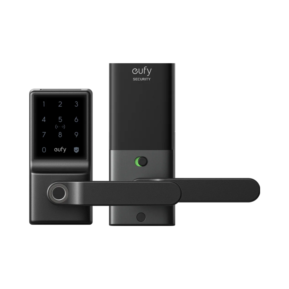 The eufy Smart Lever Lock C33 (Black, T85L0111) is a high‑security keyless lever lock designed for doors that open inward or outward. It offers ultra-fast fingerprint recognition, app‑based remote control over built‑in WiFi, auto‑locking functionality, and compatibility with both left‑ and right‑handed doors. With up to 12 months of battery life and easy installation without drilling, it’s ideal for modern homes, rental units, and upgrade projects.