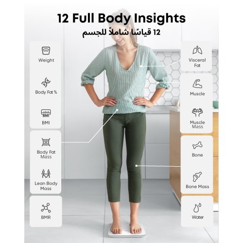 | Measurements Provided | Weight plus 11 additional body metrics (total 12) including body fat %, BMI, muscle mass, bone mass, body water etc. |