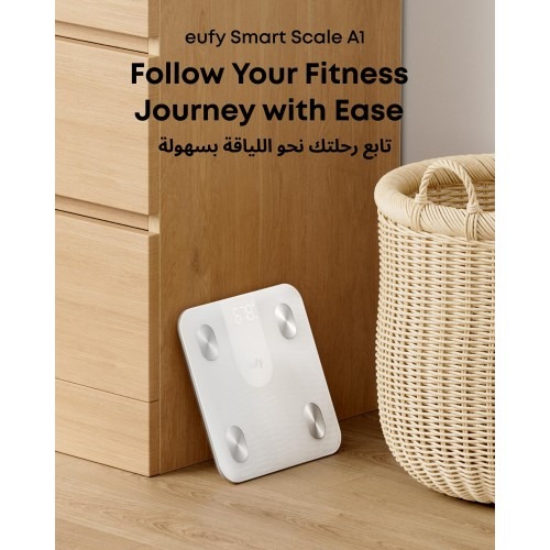 The eufy Smart Scale A1 White (T9120K21) is a compact Bluetooth‑enabled body composition scale that supports up to 16 user profiles and provides data on weight and multiple health measurements. With a sleek 26 × 26 cm footprint and slim profile, it’s designed for easy storage and daily tracking of body metrics via the eufyLife app.