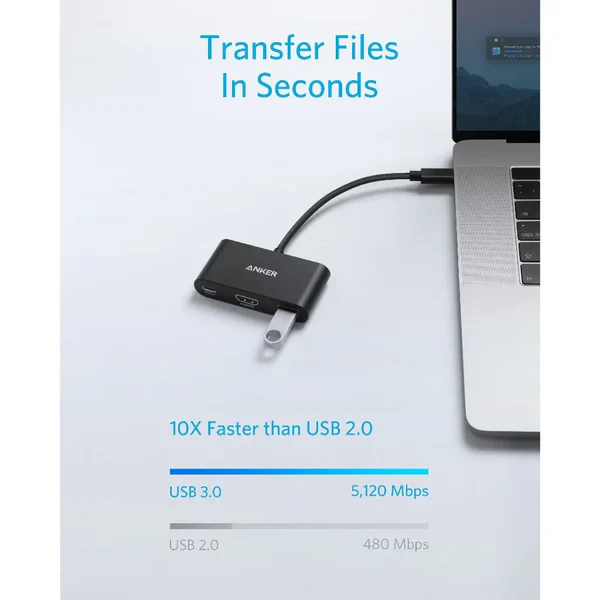 The ANKER PowerExpand 3-in-1 USB-C PD Hub (A8339HA1) is a compact and versatile hub that expands your USB-C port into three essential connections: a USB-C Power Delivery (PD) input for pass-through charging, a USB-A port for data transfer, and an HDMI port supporting up to 4K@30Hz video output. Ideal for laptops, tablets, and USB-C devices, it allows seamless connectivity for work, media, or gaming.
