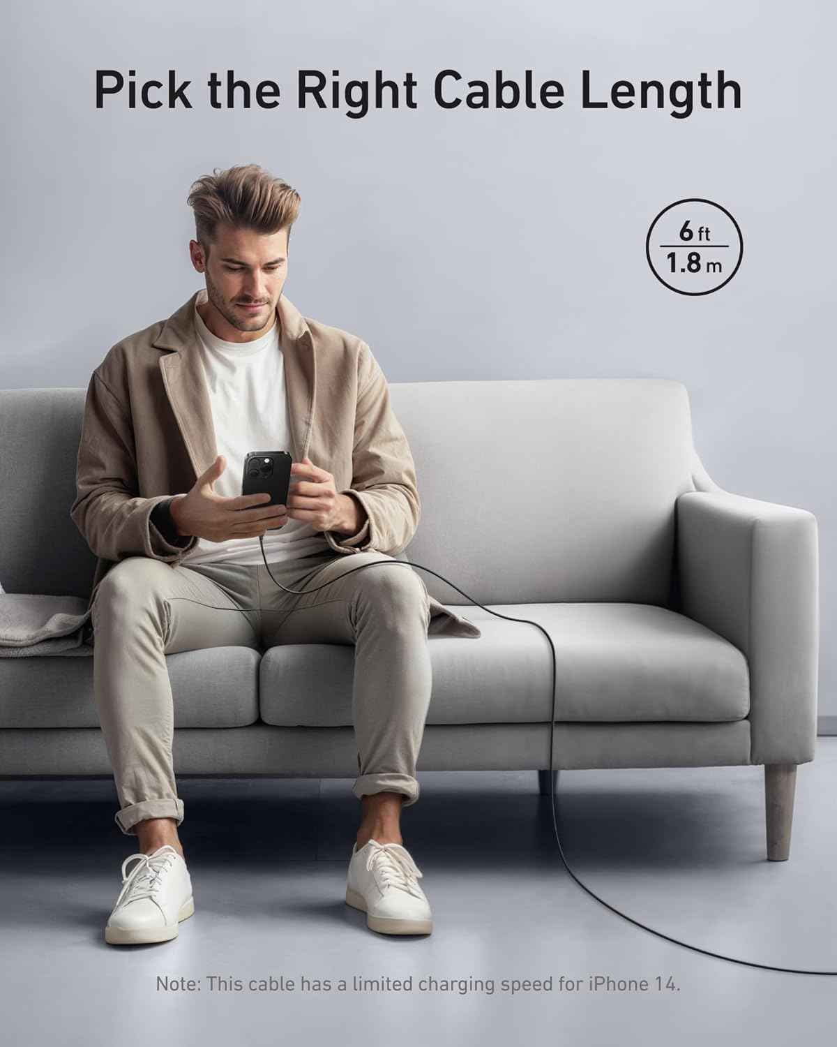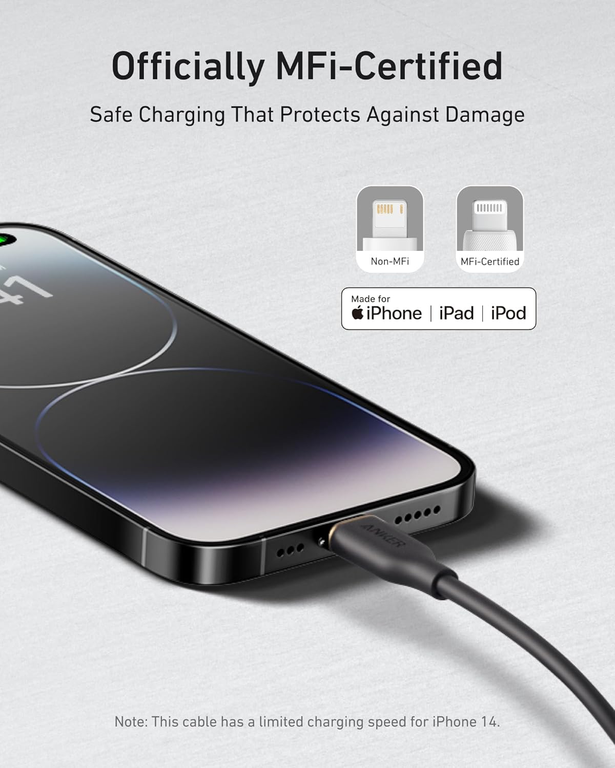 The Anker PowerLine III Flow USB-A to Lightning Cable (6 ft) is designed to deliver a smoother, more comfortable charging experience with exceptional durability. Made from ultra-soft, skin-friendly silicone, this cable feels gentle in your hands and is flexible enough for effortless everyday use at home, in the office, or on the go.