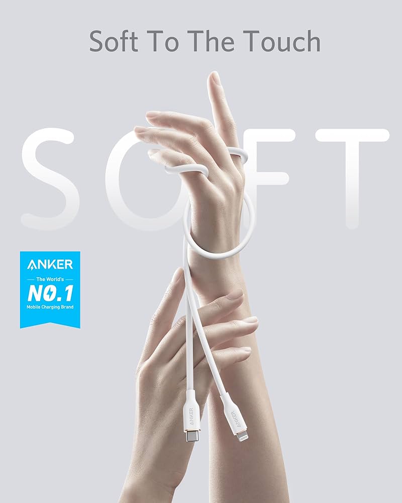 The Anker PowerLine III Flow USB-C to Lightning Cable is a premium, MFi-certified charging cable designed for fast charging and superior durability. Engineered with a soft silicone exterior and a reinforced internal structure, it combines flexibility, strength, and style. Supporting Power Delivery fast charging, it can charge an iPhone 13 from 0% to 50% in just 30 minutes when paired with a compatible USB-C PD charger. Available in multiple pastel colors, it’s built to last with a remarkable 25,000-bend lifespan.