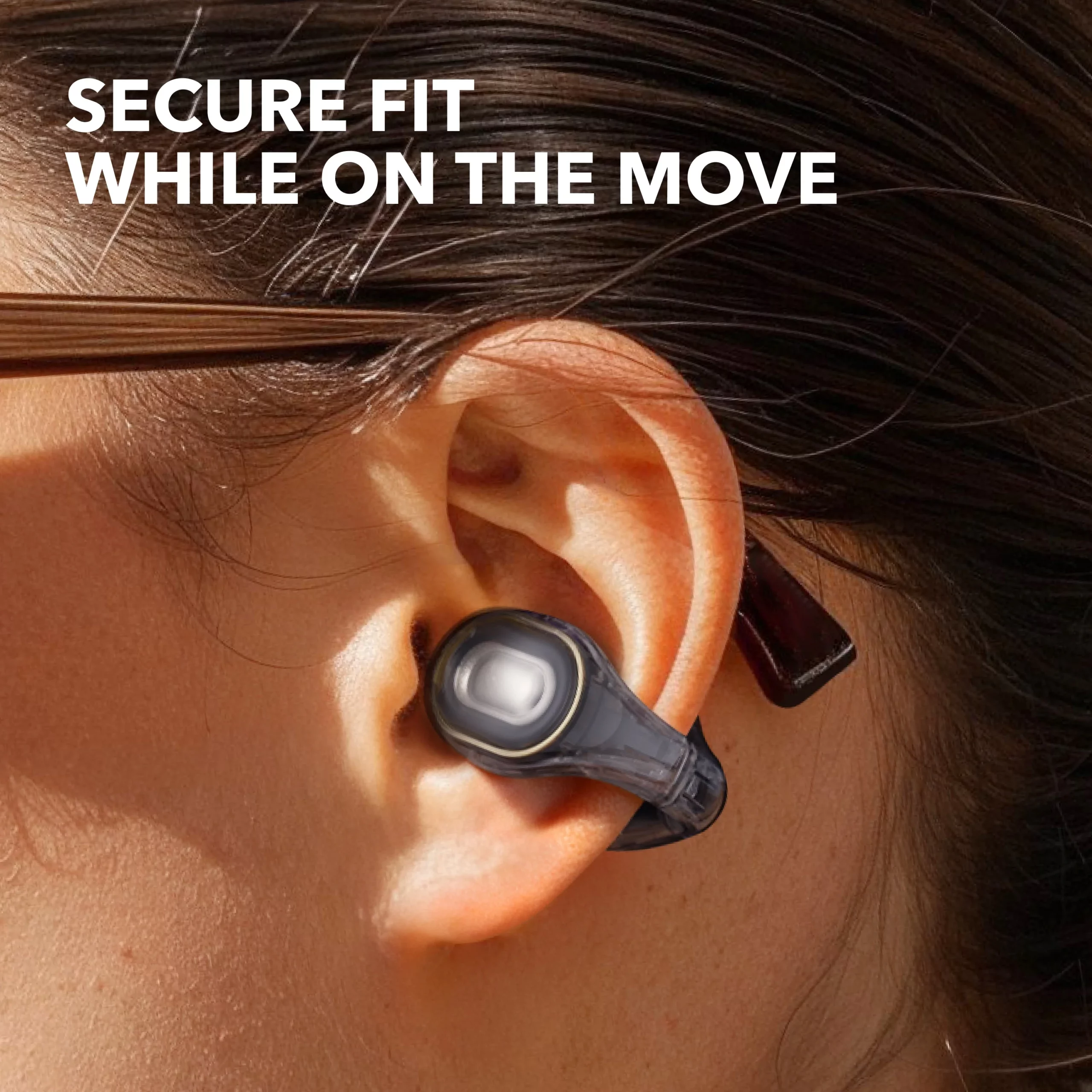 | Features | Open-ear clip-on design, firm shell clip with optional ear-grips for stability, multipoint device pairing within Soundcore app, touch controls, breathable fit for awareness of surroundings. |
