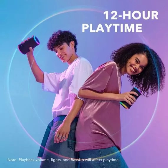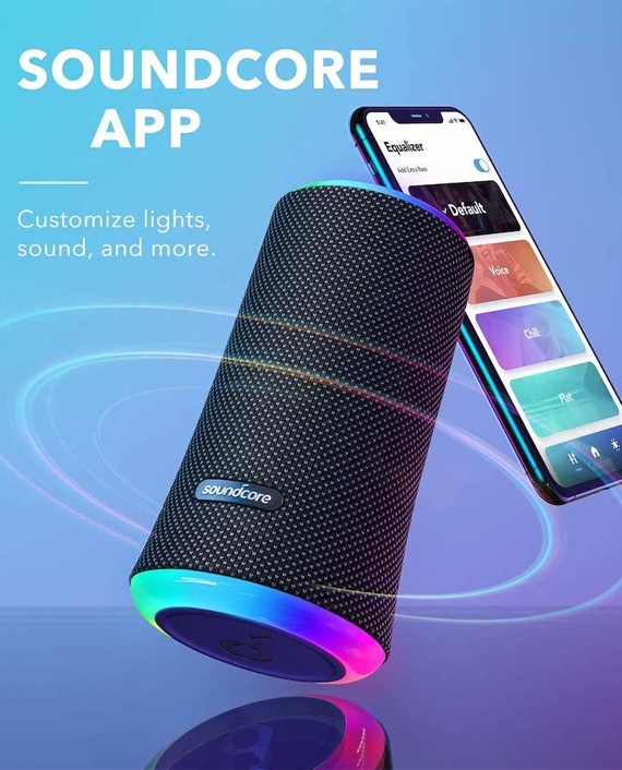 The Anker Soundcore Flare 2 Black delivers 360° sound with deep bass and immersive audio performance in a compact, waterproof design. Equipped with BassUp technology and customizable LED light rings, this portable Bluetooth speaker brings vibrant sound and visual flair to parties, outdoor gatherings, or casual listening. With IPX7 waterproof rating and 12-hour battery life, the Flare 2 is built for both durability and convenience.