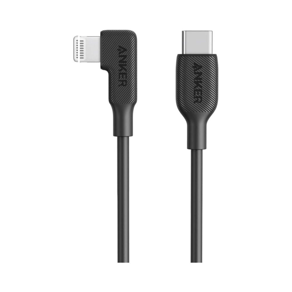 The Anker Type-C to Right Angle Lightning Cable – 6 ft, Black (Y2370H11) is built for durability, convenience, and seamless Apple device compatibility. Its 90° Lightning connector reduces strain and improves ergonomics, while the braided nylon exterior ensures tangle-resistance. MFi-certified, it supports fast charging and safe data sync for iPhone, iPad, and other Lightning-port Apple devices.