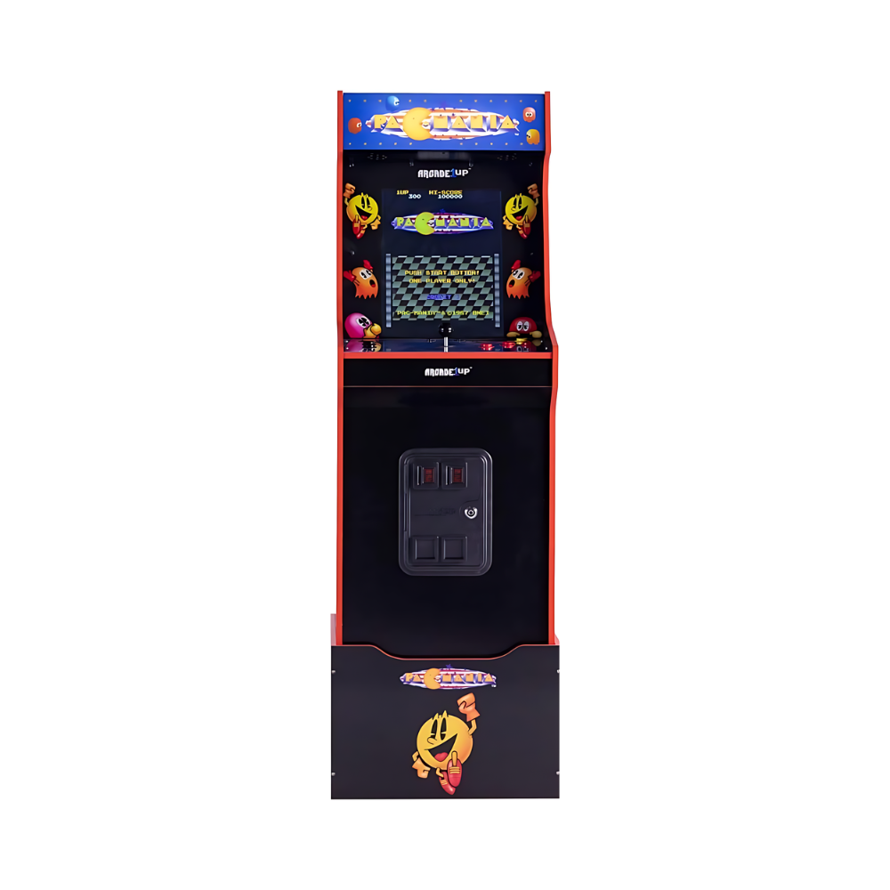 The ARCADE1UP PAC-MAN ARCADE MACHINE is a 3/4-scale replica of the classic 1980 arcade cabinet, designed to bring the nostalgic experience of Pac-Man into your home. This machine features a vibrant 17-inch color LCD screen, stereo speakers, and authentic arcade controls, all housed in a cabinet that stands approximately 5 feet tall. With its light-up marquee and molded coin door, it captures the essence of the original arcade experience.