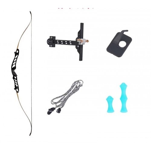 The ARCHERY Beginner Bow Package is a complete starter kit designed for new archers. It includes a lightweight recurve bow, arrows, a finger tab, arm guard, and a quiver. The bow is easy to handle and adjustable for beginners, making it perfect for learning proper form, accuracy, and safety in target practice.