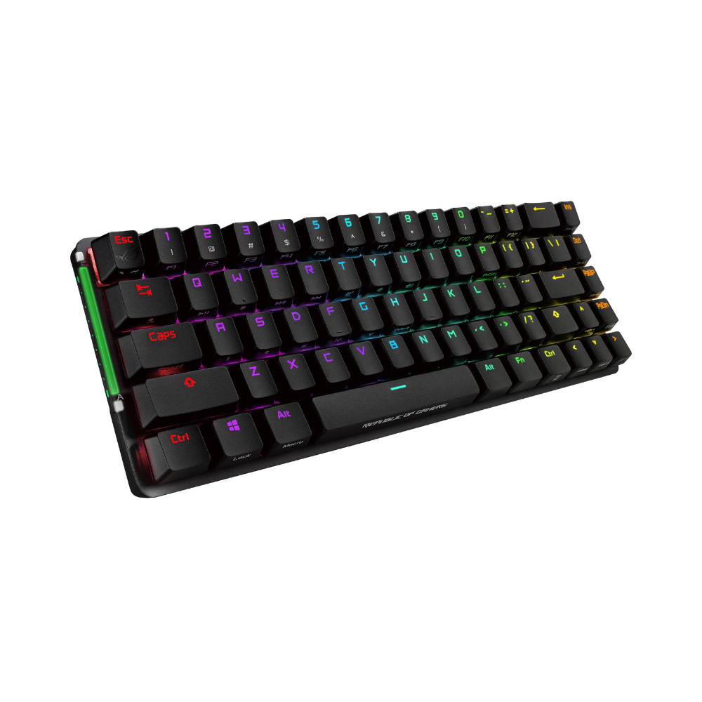 The ASUS M601 ROG Falchion is a premium 65% wireless/wired mechanical keyboard designed for gaming and productivity. It features a compact layout with Cherry MX RGB switches for smooth, tactile feedback and vibrant lighting. The keyboard supports wired USB‑C and RF 2.4 GHz wireless connections, offering versatility and low-latency performance. With customizable RGB lighting and a programmable touch panel, the ROG Falchion combines elegance, functionality, and portability for gamers on the go.