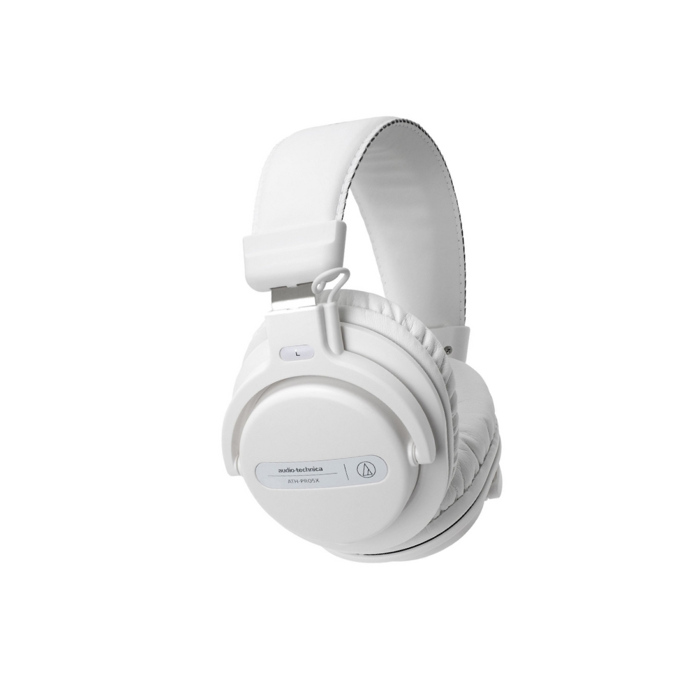 The **Audio‑Technica ATH‑PRO5XWH DJ Monitor Headphones (White)** are engineered for performance, durability, and clarity on the dance floor. Featuring newly developed **40 mm drivers** capable of handling **1,500 mW input power**, they deliver distortion-free sound even at high volumes—perfect for DJ use. Built to withstand demanding environments, the ATH‑PRO5XWH sports a lightweight yet sturdy construction, **detachable locking cables** (coiled and straight options) for secure connections, and plush over‑ear earpads for extended comfort and excellent isolation.