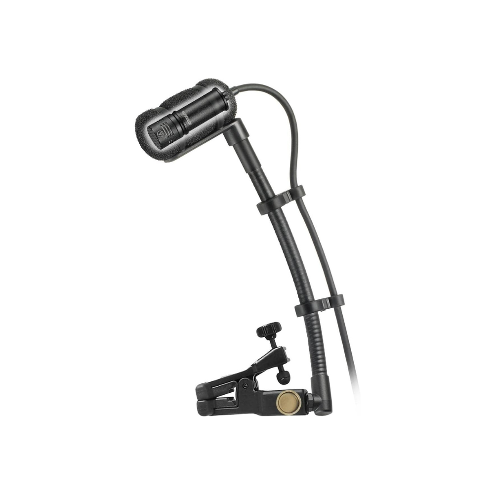 The Audio‑Technica ATM350UcH is a clip‑on condenser instrument microphone designed to provide professional‑level sound capture for brass, woodwinds, percussion, strings, piano — and virtually any acoustic instrument requiring discreet mounting and reliable, high‑SPL performance. Its low-profile condenser capsule ensures minimal visual distraction while delivering a crisp, clear, well-balanced response even under demanding, high‑volume playing conditions.