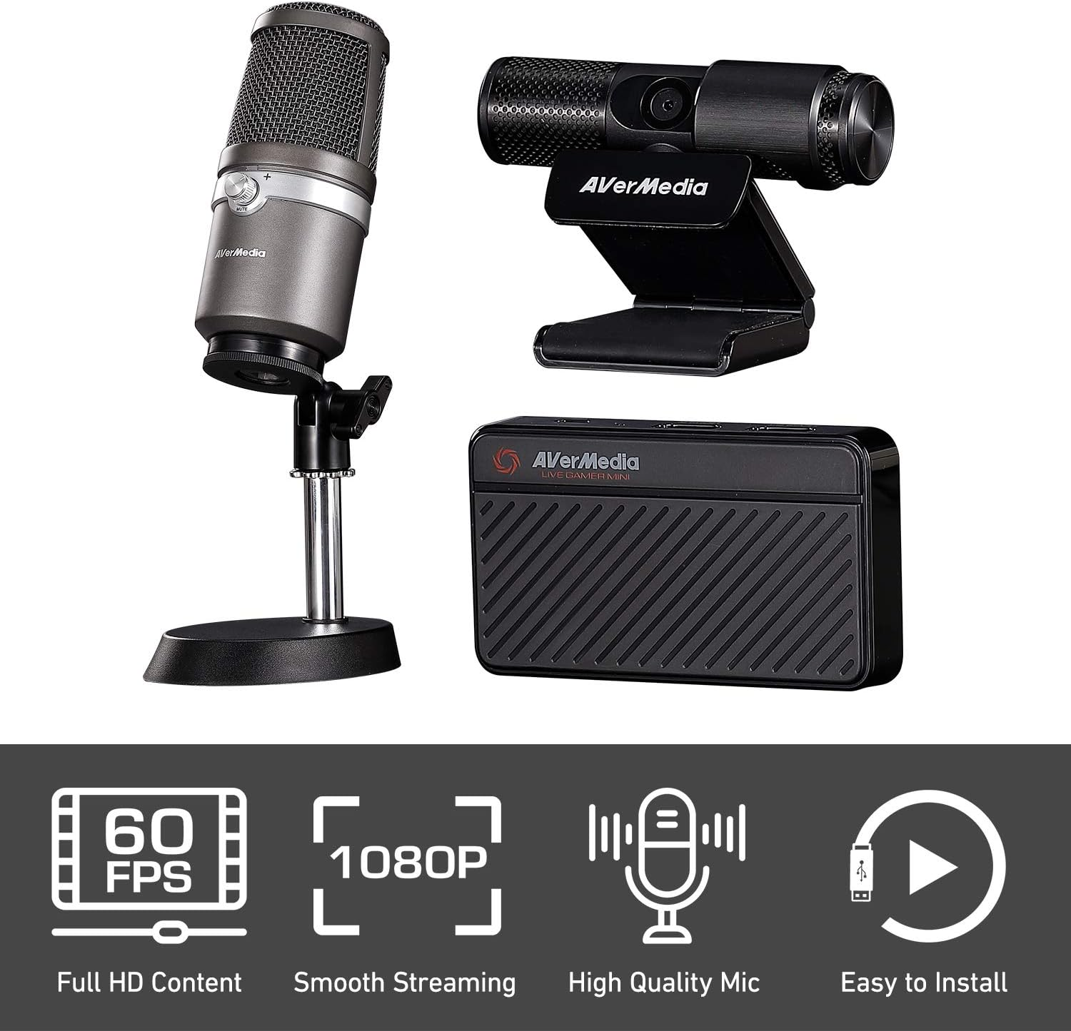 The AVerMedia Live Streamer 311 All-in-One Streaming Bundle is a complete starter kit designed for aspiring content creators and gamers who want to stream with confidence. This bundle combines a Full HD capture card, a USB condenser microphone, and a high-quality webcam to deliver everything needed to stream, record, and share content with ease.