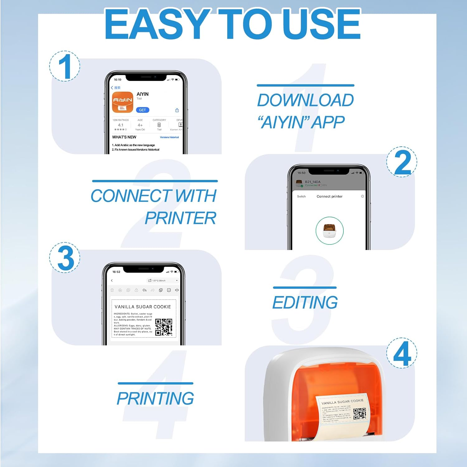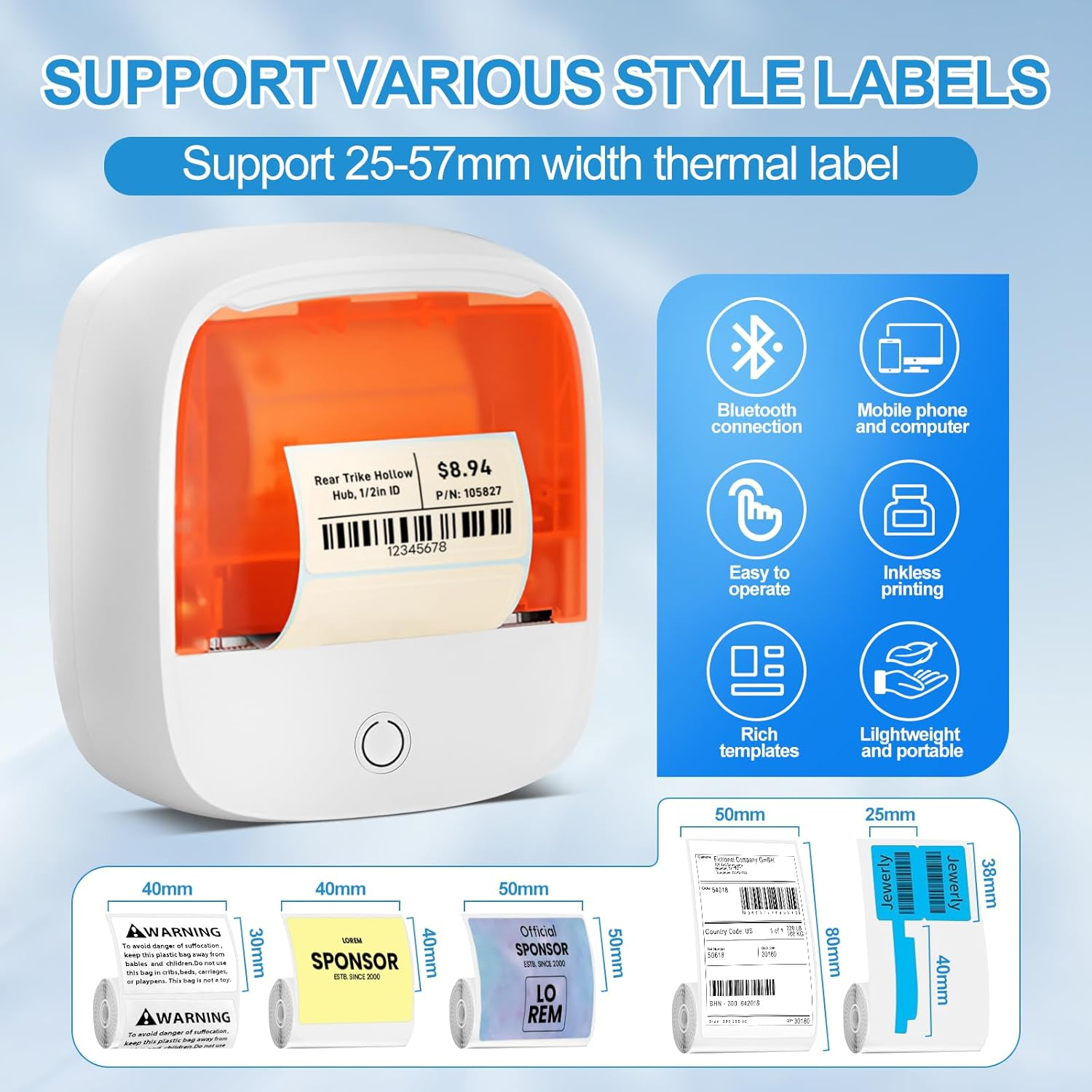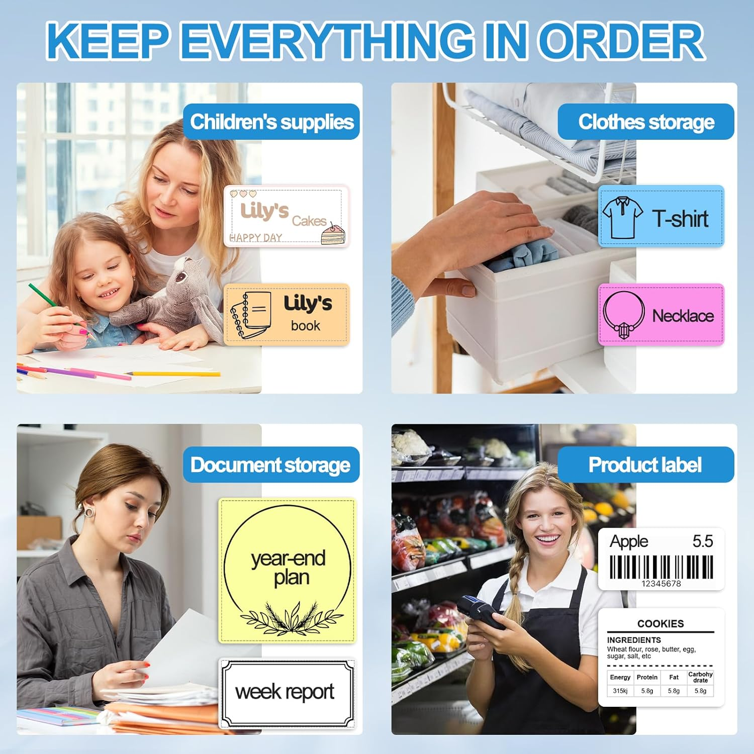 Equipped with a built-in 2500 mAh rechargeable battery and Bluetooth connectivity, the B21 pairs seamlessly with iOS and Android devices. A roll of 40 × 30 mm label tape is included, allowing you to start labeling right away. Whether for home organization or professional classification tasks, this versatile label printer simplifies daily organization with ease.