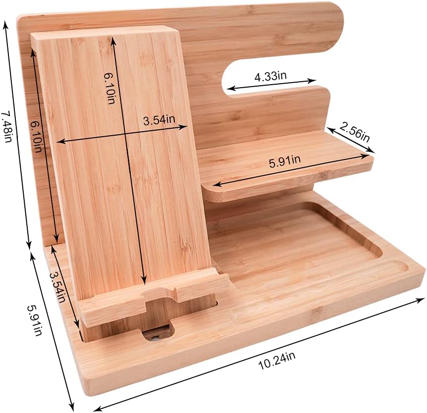 The Philojoy Wooden Nightstand Organizer is a versatile docking-station and storage unit combining aesthetic wood finish with functional organisation. It provides dedicated compartments for essentials like smartphones, keys, wallet, watch, glasses and small accessories — ideal for bedside tables, desks, or hallway consoles. Its polished wood (or bamboo) build and compact footprint make it a tidy, elegant solution for everyday clutter, offering both storage and a subtle decorative touch.