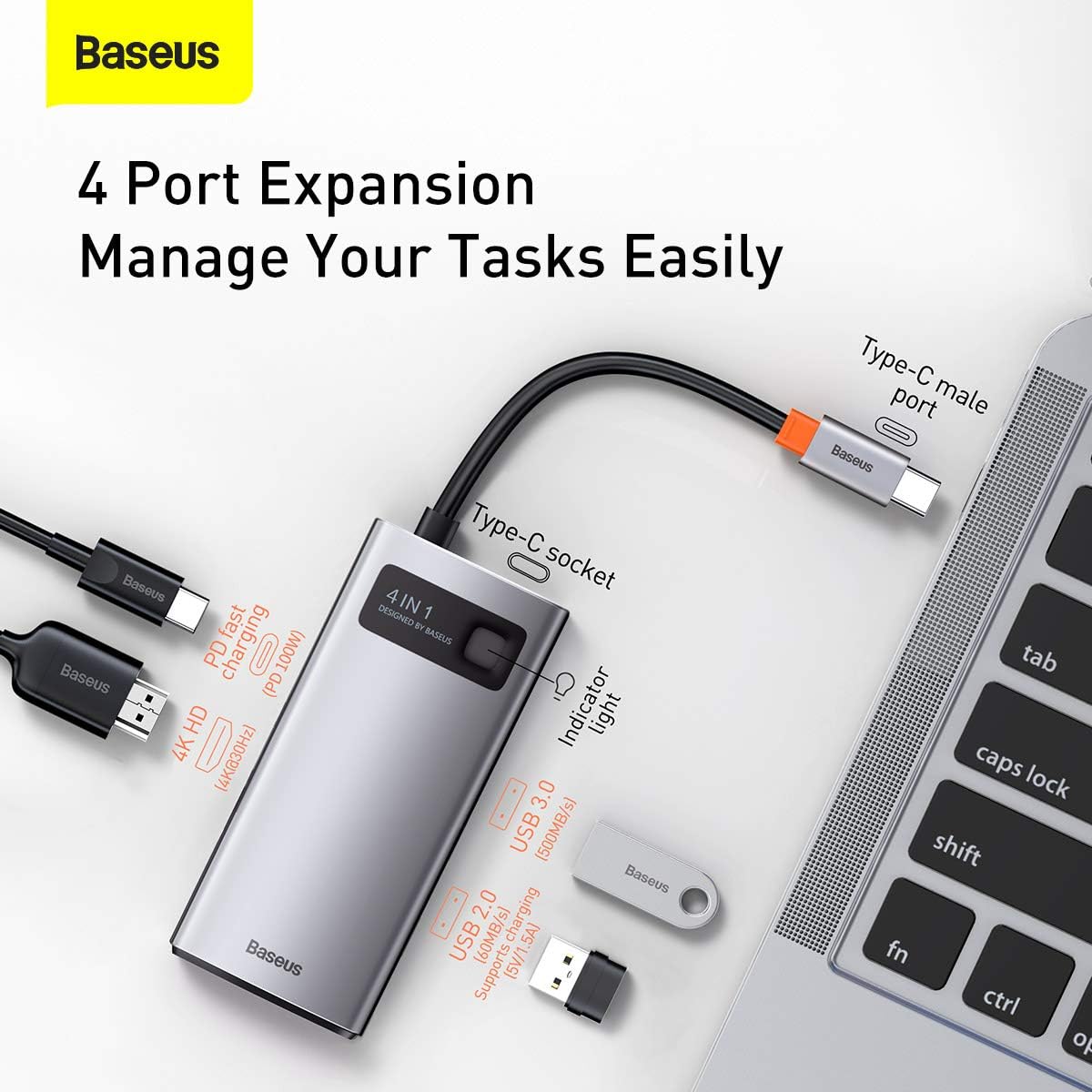 Crafted with a premium aluminum alloy casing, the Baseus Metal Gleam Series hub offers durability, efficient heat dissipation, and a refined aesthetic that complements any laptop setup. Its plug-and-play design ensures effortless operation without the need for drivers, and it is fully compatible with both Windows and macOS systems, making it a dependable companion for professionals and students alike.