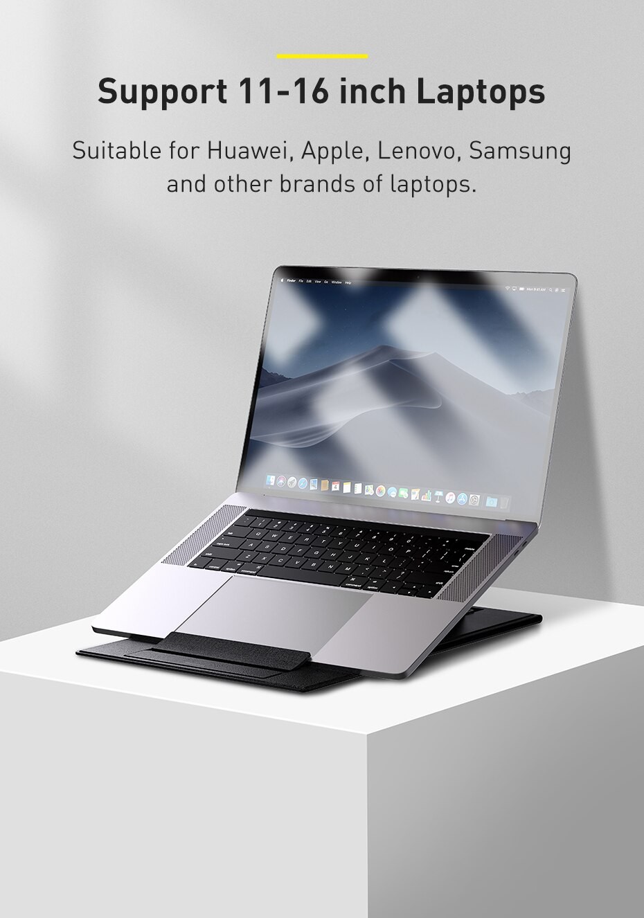 The Baseus Ultra Folding Laptop Stand is a portable and foldable laptop stand designed to improve ergonomics and airflow for your laptop. Its lightweight and compact design allows for easy transportation, making it ideal for students, remote workers, or anyone who needs a flexible laptop setup on the go.
