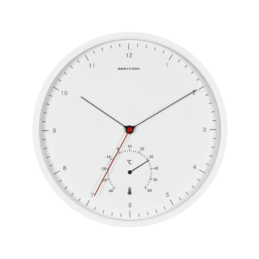 | Additional Features | Built-in thermometer, silent movement, minimalist design |