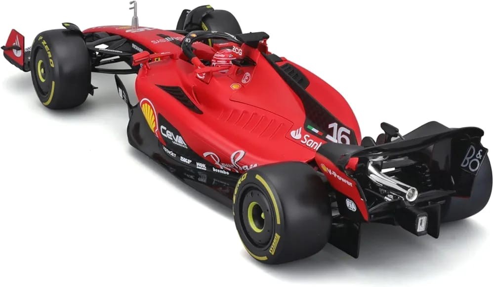 The Bburago – Formula Racing Ferrari SF23 16 Charles Leclerc 1:18 Scale Die-Cast Car is a highly detailed die-cast collectible replicating Charles Leclerc’s 2023 Ferrari SF-23 Formula 1 car. Designed with authentic sponsor decals, aerodynamic bodywork, and Ferrari’s signature red livery, this model brings the thrill of the F1 grid to your collection. The included miniature Leclerc driver helmet adds an exclusive touch, while the precision-molded components and metallic paint capture every contour of the real SF-23. Perfect for motorsport enthusiasts and collectors alike, this model offers an impressive display presence straight out of the box.