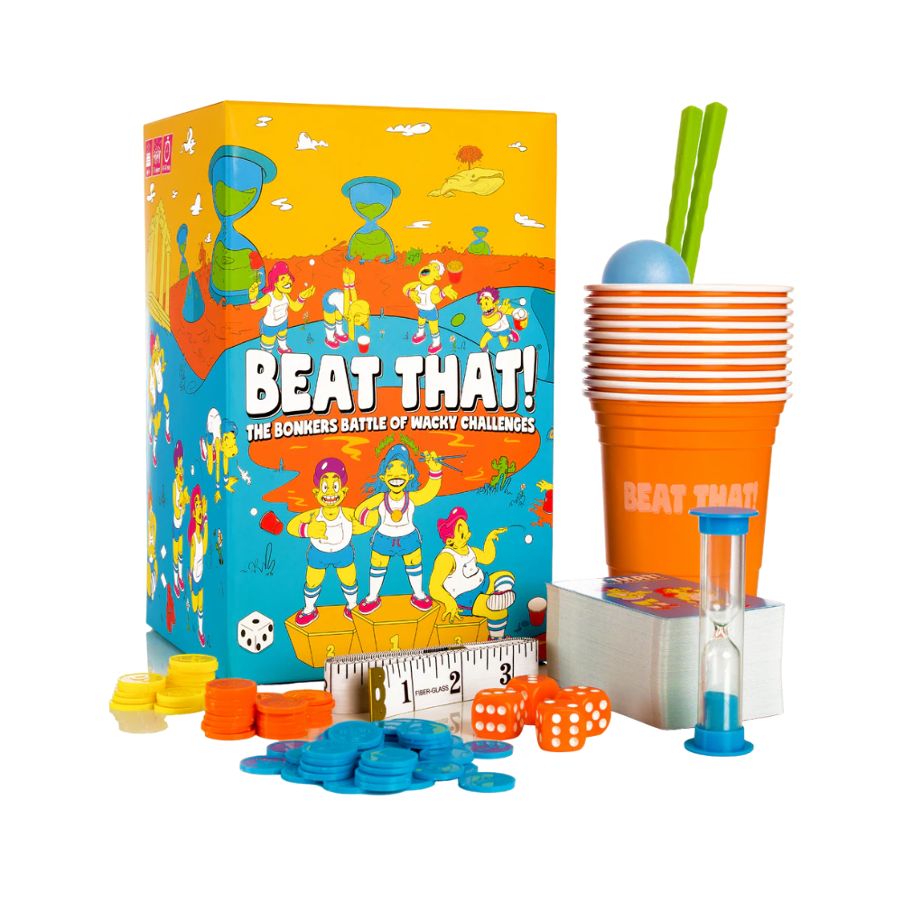The Beat That – The Bonkers Battle of Wacky Challenges Card Game is a hilarious, fast-paced game where players compete in outrageous and creative challenges. From balancing objects to performing silly stunts, every round is filled with laughter, energy, and friendly chaos.