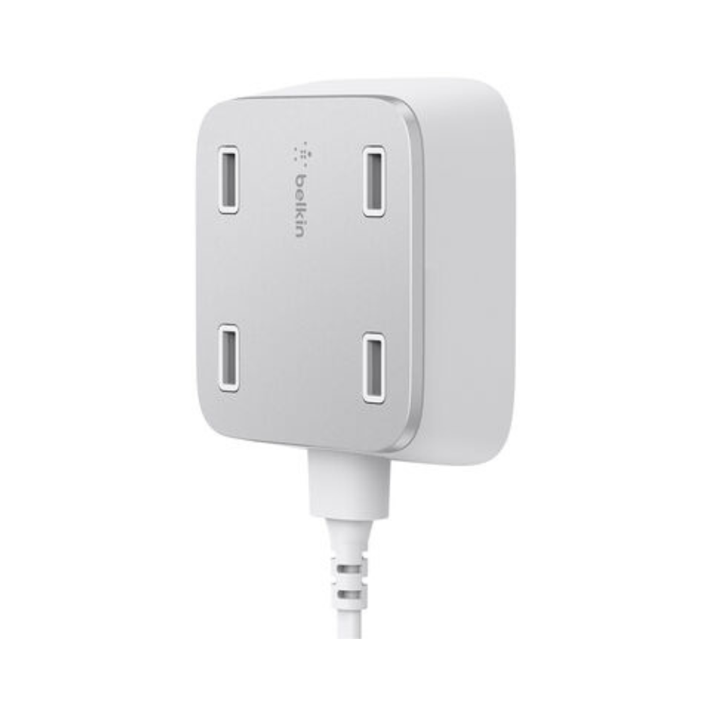 The Belkin Family RockStar 4‑Port USB Home Charger lets you power up to four devices simultaneously from a single wall outlet. Featuring intelligent charging circuitry, it dynamically allocates power to connected devices—supporting tablets and phones at optimal speed. The long 10 ft (3 m) cable and wall-mountable design make it ideal for flexible placement in homes and offices.