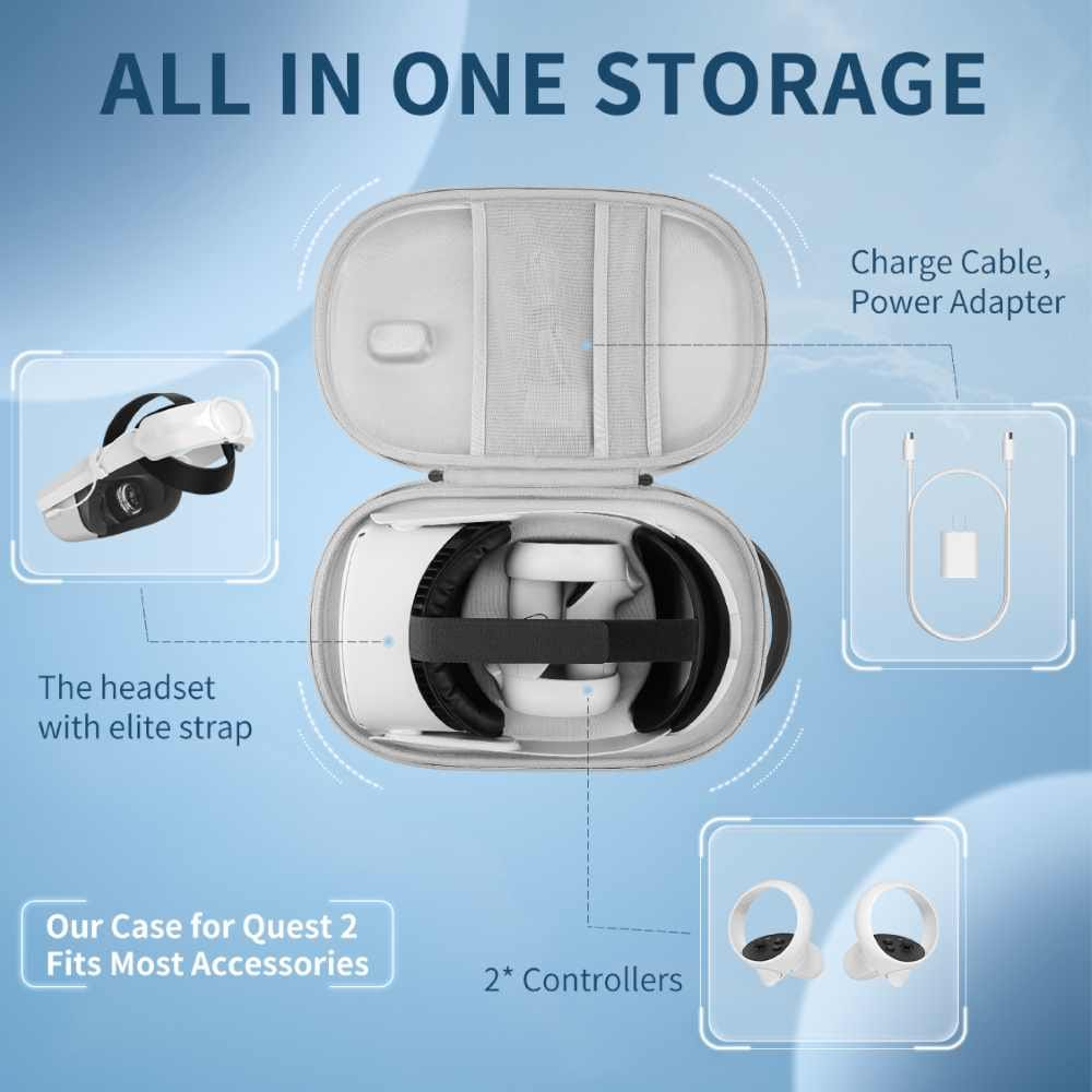 The Blupebble Carry Case is a premium hard-shell case custom-designed to perfectly fit your Meta Quest 2 headset and accessories. Crafted with durable, high-density materials and a smooth pebble-shaped exterior, this case offers complete protection against falls, impacts, dust, and splashes. Its internal custom molding keeps your VR headset, controllers, cables, and power adapter neatly organized, while built-in elastic mesh straps prevent movement and scratches during transport. Stylish, compact, and reliable — an ideal companion for your VR adventures.