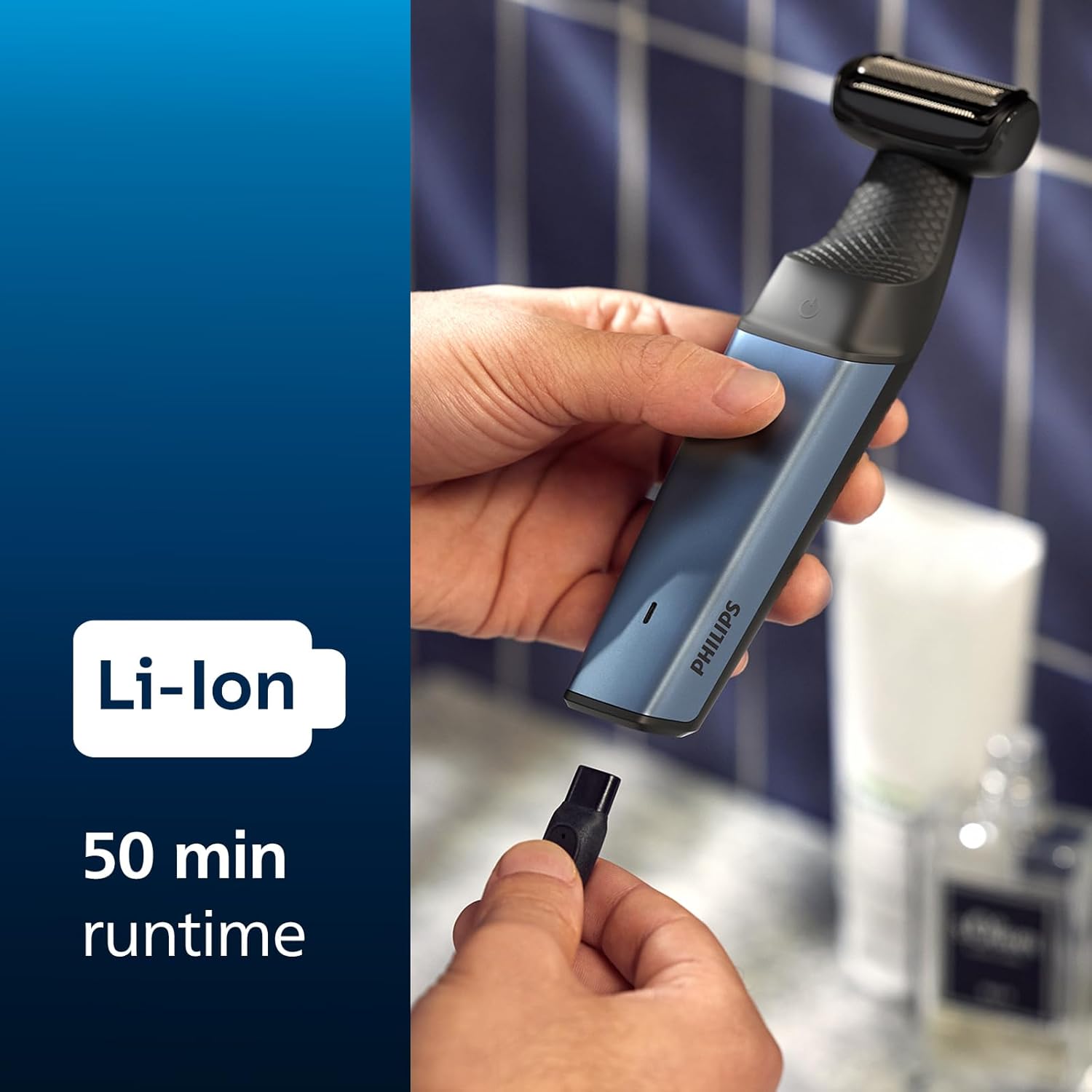 The Philips Bodygroom Series 3000 Showerproof Groin and Body Trimmer is designed for safe, comfortable, and efficient full-body grooming. Ideal for trimming and shaving hair on the chest, back, shoulders, armpits, arms, legs, and groin area, it features skin-friendly rounded tips and a hypoallergenic shaving grid to protect delicate skin. The two-way comb system trims in all directions for faster results, while its fully waterproof design allows for convenient wet or dry use, even in the shower. Powered by a rechargeable battery, it delivers reliable performance with fast charging for everyday grooming needs.