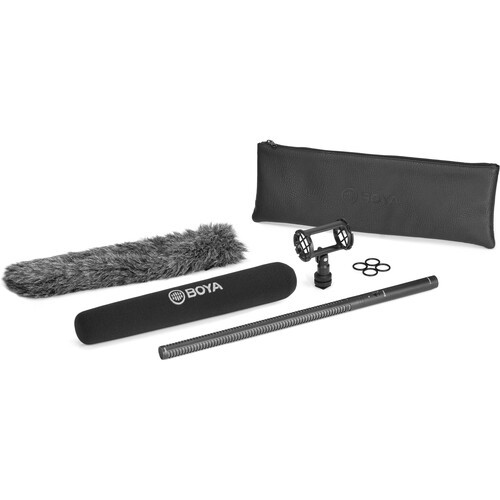 Supplied with a foam windscreen to reduce light wind noise for indoor shoots and a furry windshield to control stronger wind noise in outdoor shoots