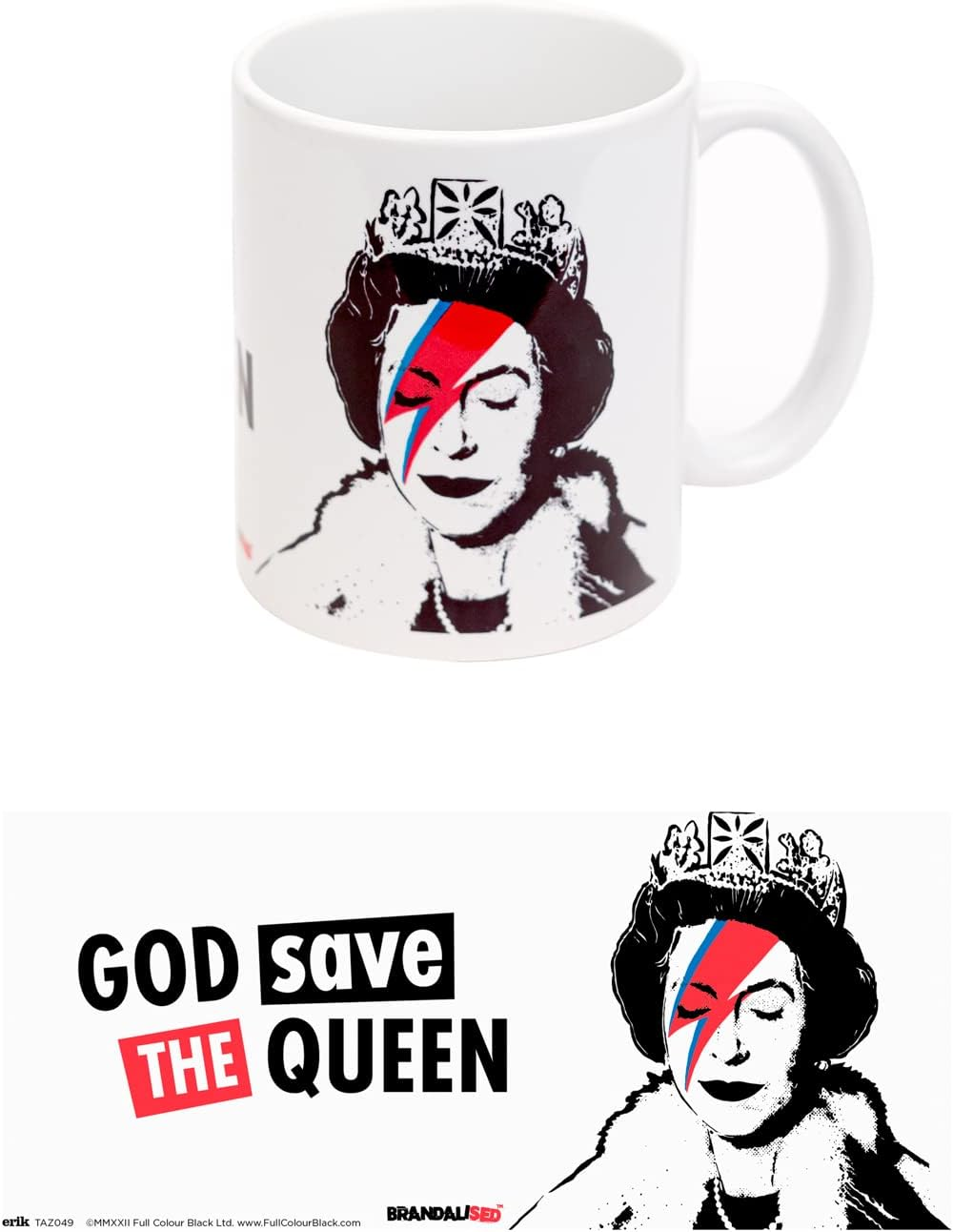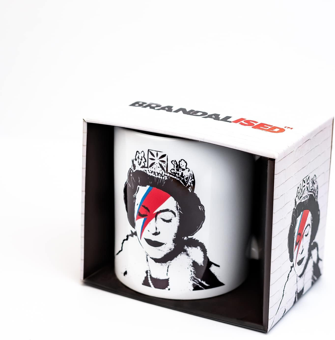 The BRANDALISED – God Save the Queen Mug showcases one of the most iconic and provocative artworks in modern street art culture. Inspired by the famous Banksy-style design, this mug delivers a bold statement that blends pop art, rebellion, and contemporary culture. Crafted from high-quality ceramic with a 350 ml capacity, it is perfect for everyday use whether at home or in the office. A striking and conversation-starting piece, ideal for fans of street art, modern design, and collectible merchandise.