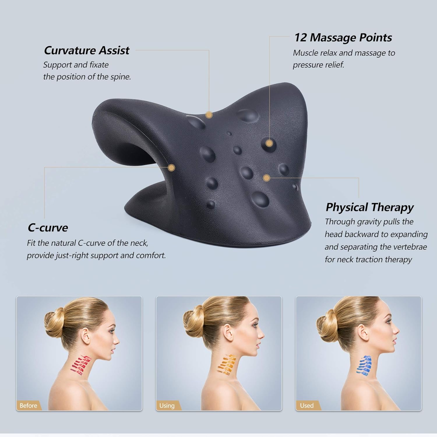 Helps restore proper cervical curvature associated with consistent use.
