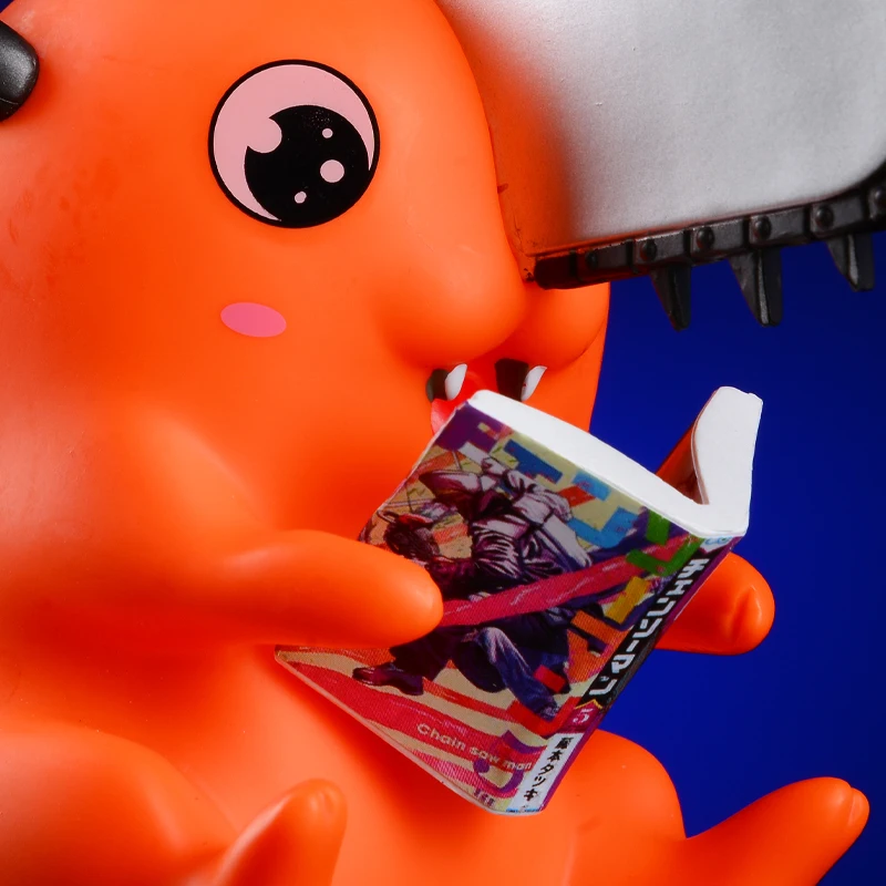 Pose & DesignSeated Pochita reading a book — finely detailed sculpt and paintwork