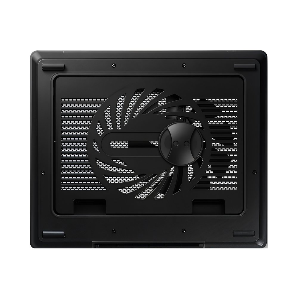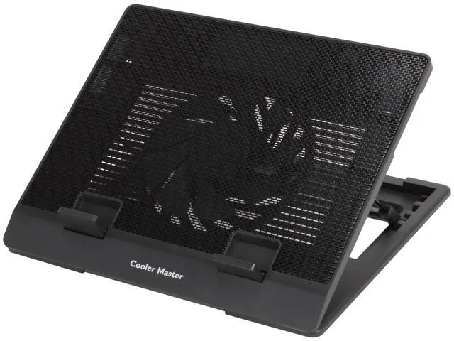 The Cooler Master Notepal Ergostand Lite (R9-NBS-ESLK-GP) is an ergonomic laptop cooling pad designed to enhance comfort and performance. It features a large 160mm fan with three adjustable positions, ensuring efficient heat dissipation for laptops up to 15.6 inches. The stand offers five ergonomic height settings, allowing users to find the most comfortable viewing and typing angles. Its perforated metal mesh surface promotes optimal airflow, while non-slip feet keep the pad securely in place during use.
