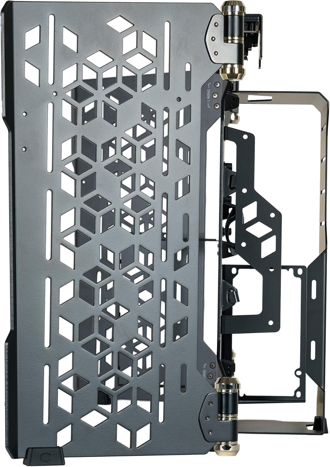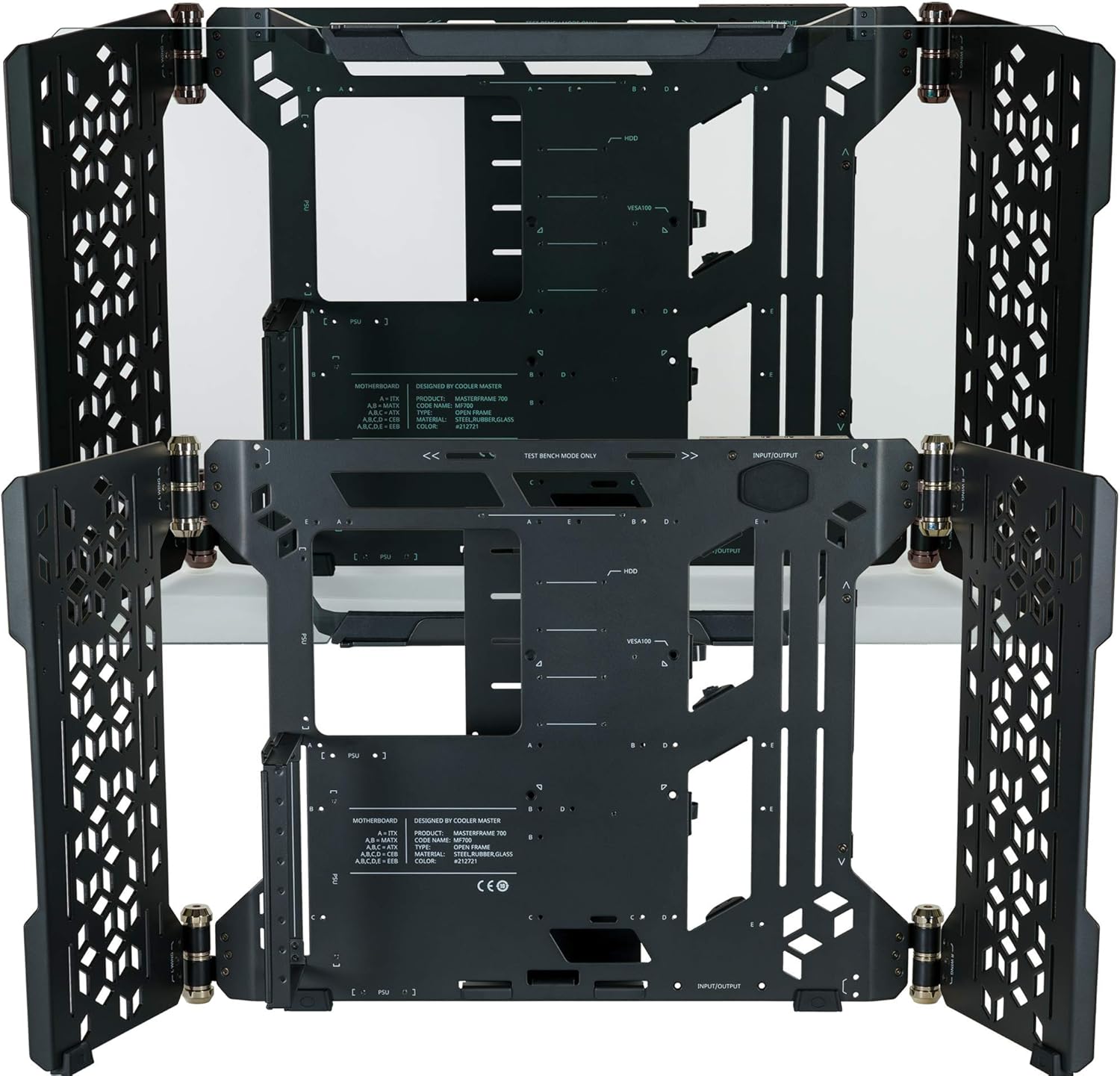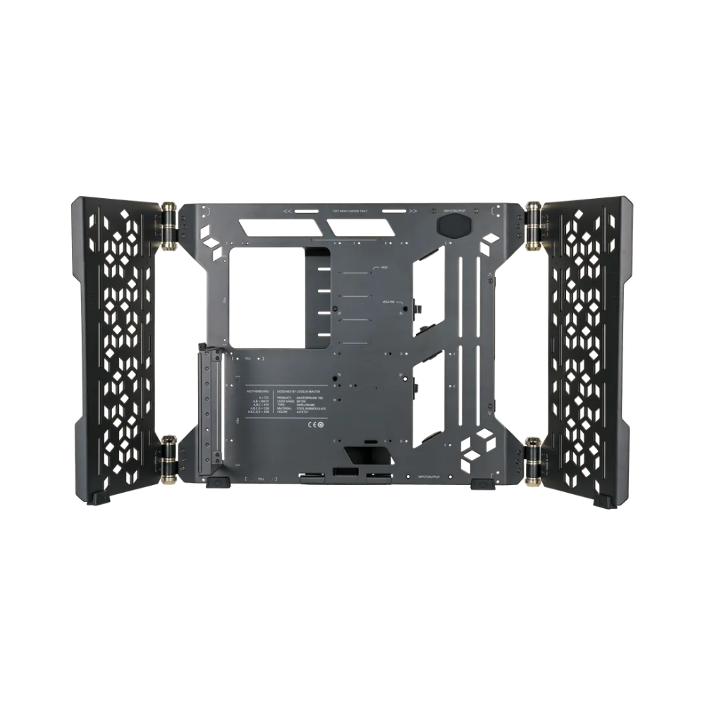 The Cooler Master MasterFrame 700 is a versatile full-tower case designed for enthusiasts, modders, and high-performance builds. It offers a unique open-air design with modular side wings and panoramic tempered glass panels, allowing for display-oriented builds or easy hardware swaps. With support for dual ATX power supplies, large GPUs, and advanced water-cooling setups, the MasterFrame 700 combines flexibility, performance, and aesthetics for PC builders who want both functionality and style.