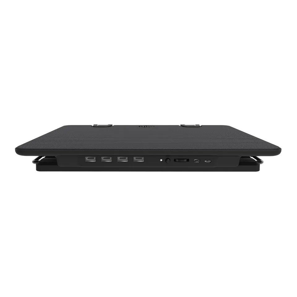 The Cooler Master NotePal Ergostand IV is an ergonomic laptop cooling stand designed to enhance your computing experience. Featuring a 140mm silent fan with an aerodynamic design, it effectively keeps your laptop cool and operating smoothly. The full mesh board improves cooling performance, while the blue LED strip adds a touch of style. With five ergonomic height settings, it ensures comfortable viewing angles, and the built-in 4-port USB hub allows for convenient connectivity.