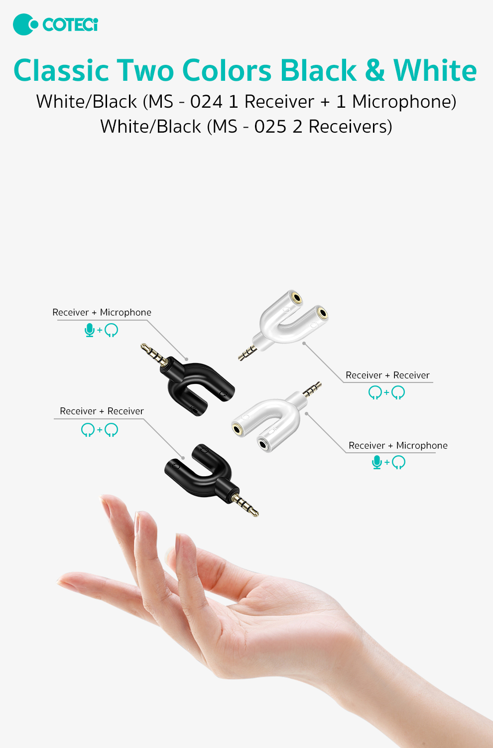 The COTECi MS-025-BK 3.5 mm Audio Jack U-Shaped Splitter is a compact U-shaped audio adapter that allows two headphones or audio output devices to share a single 3.5 mm jack at the same time. Built with a durable plastic body and metal connectors, it offers reliable everyday use. Ideal for music sharing, watching movies together, or collaborative listening such as gaming with a friend. Its passive design means both outputs share the same signal and volume level, making it a simple and convenient plug-and-play solution.