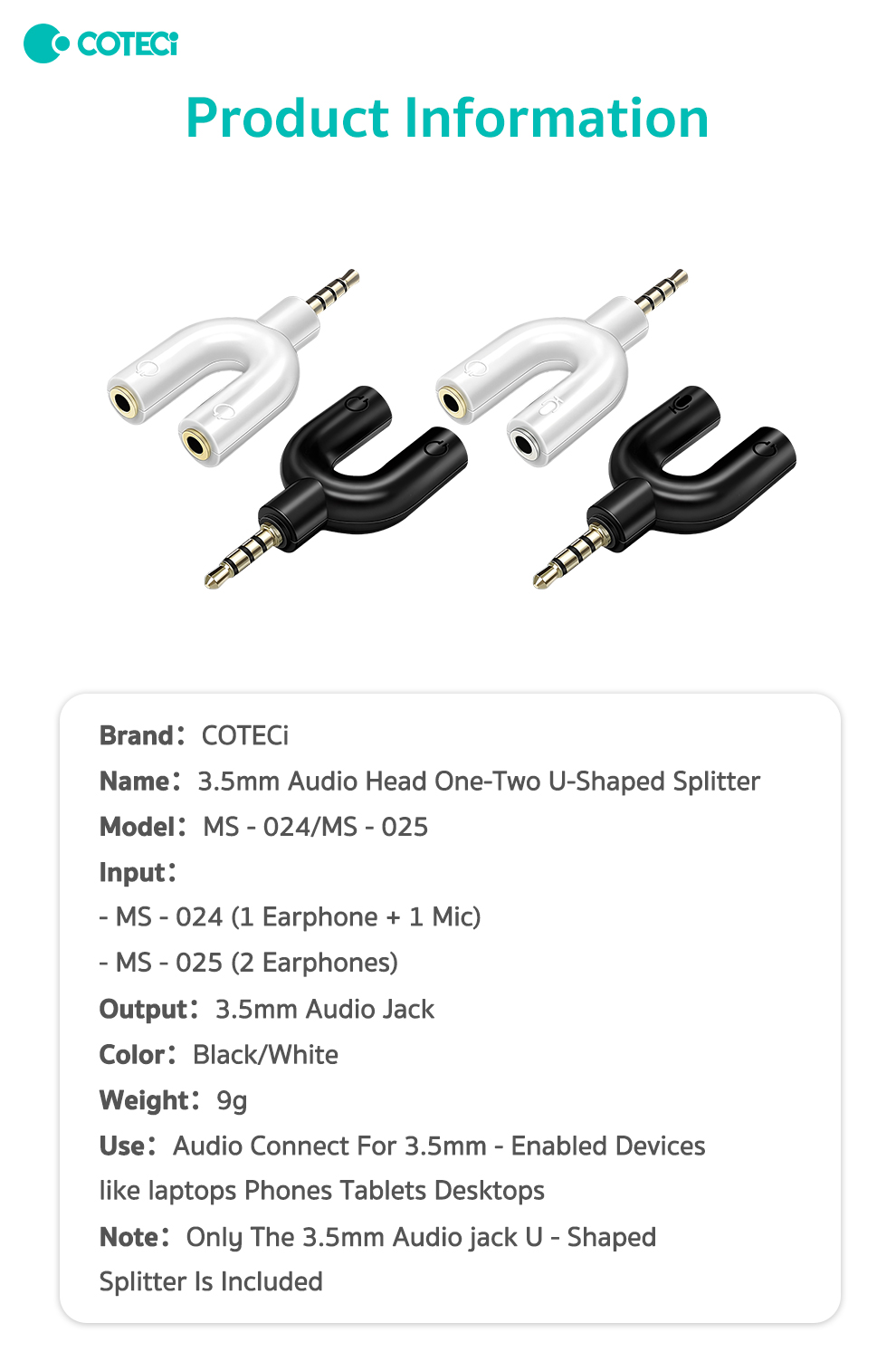 | Type | 3.5 mm audio jack U-shaped splitter |